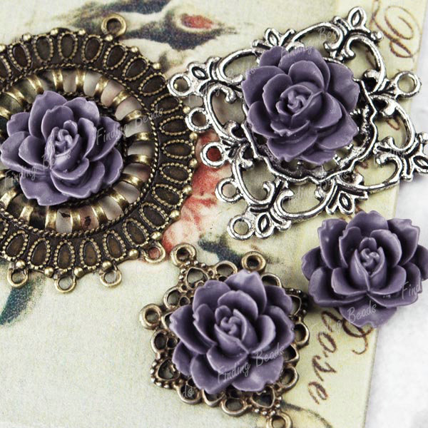 detailed Violet Resin Flower Cabochon Peony RB0535-12